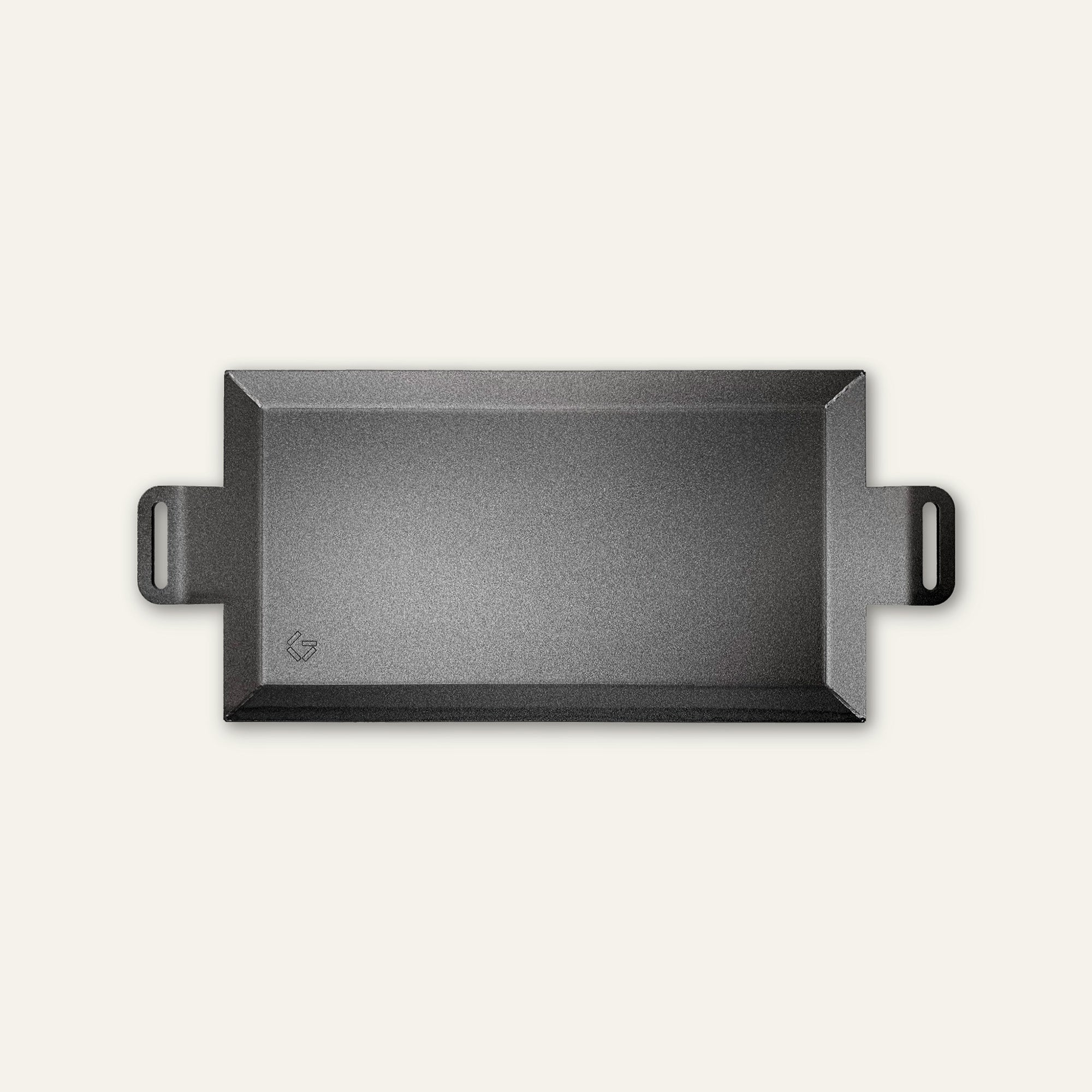 Our griddle is made in Sweden in collaboration with a company with more than 100 years of tradition behind it. The carbon steel is pressed into the unique design. Once the shape is in place, the entire griddle is sandblasted both to achieve a beautiful surface - and to prepare it for seasoning: vegetable oils are sprayed onto the sandblasted surface and seared at around 350 degrees for about 1 minutes. The surface turns completely dark - and the burnt oil polymerises, giving a natural nonstick effect, completely free of chemicals.