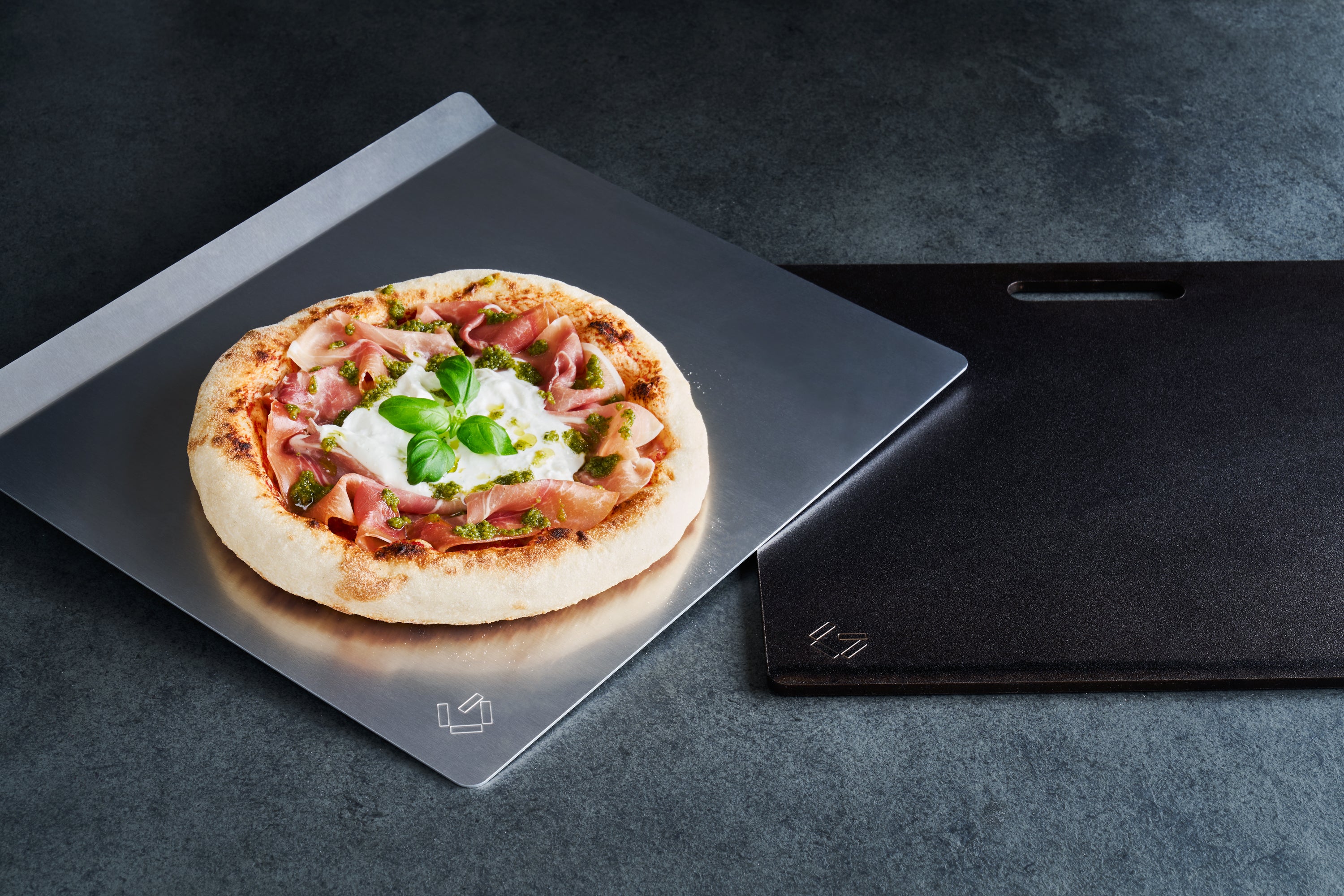 The baking steel is made of 6 mm Swedish carbon steel, laser-cut and sandblasted. At the workshop in Småland, it is sprayed with vegetable oils and seasoned in a vertical oven. This allows you to use the baking steel right away - unlike other baking steels on the market.