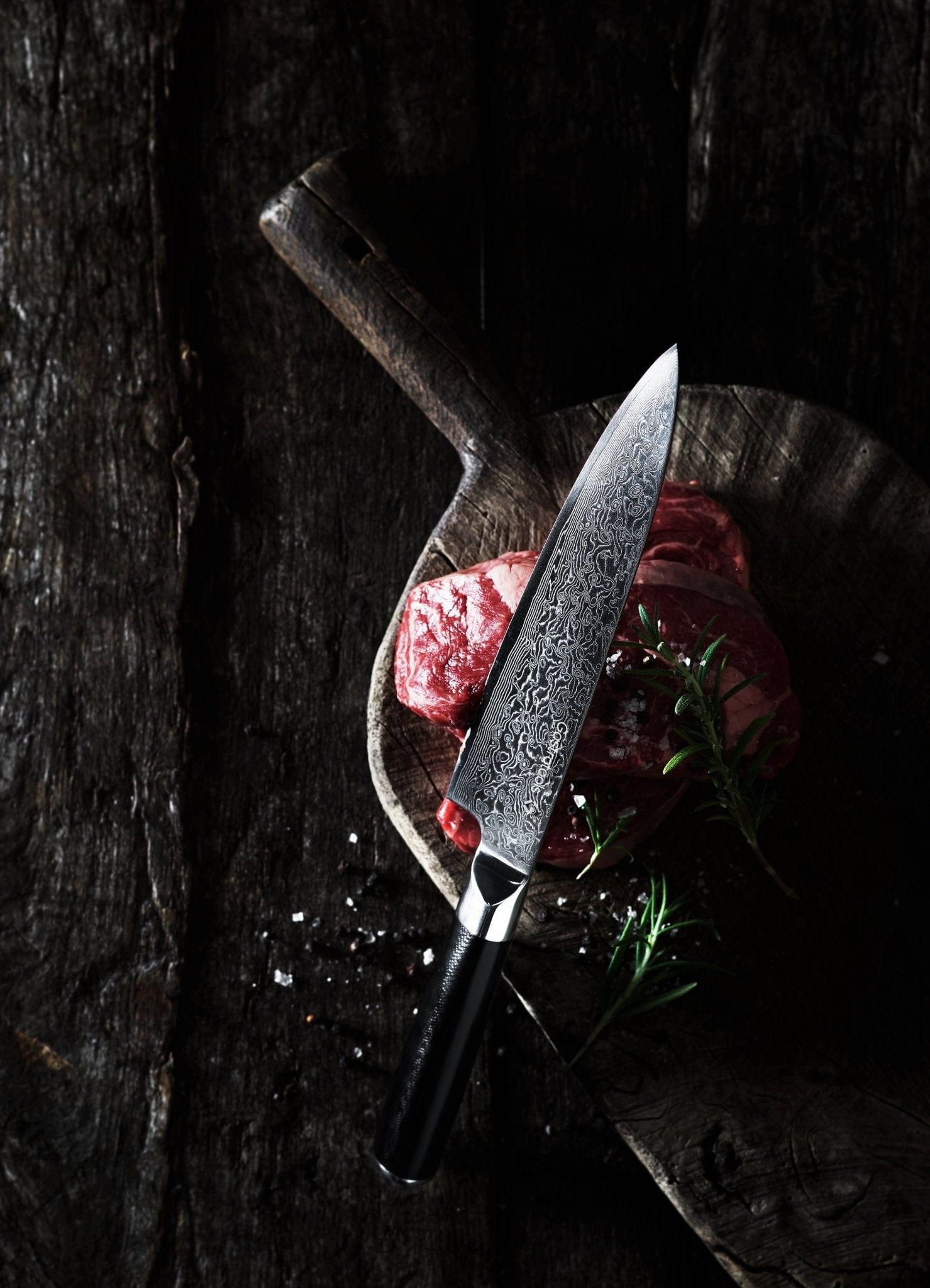 - Includes a Gyuto chef's knife, Santoku chef's knife, bread knife, paring knife, and utility knife