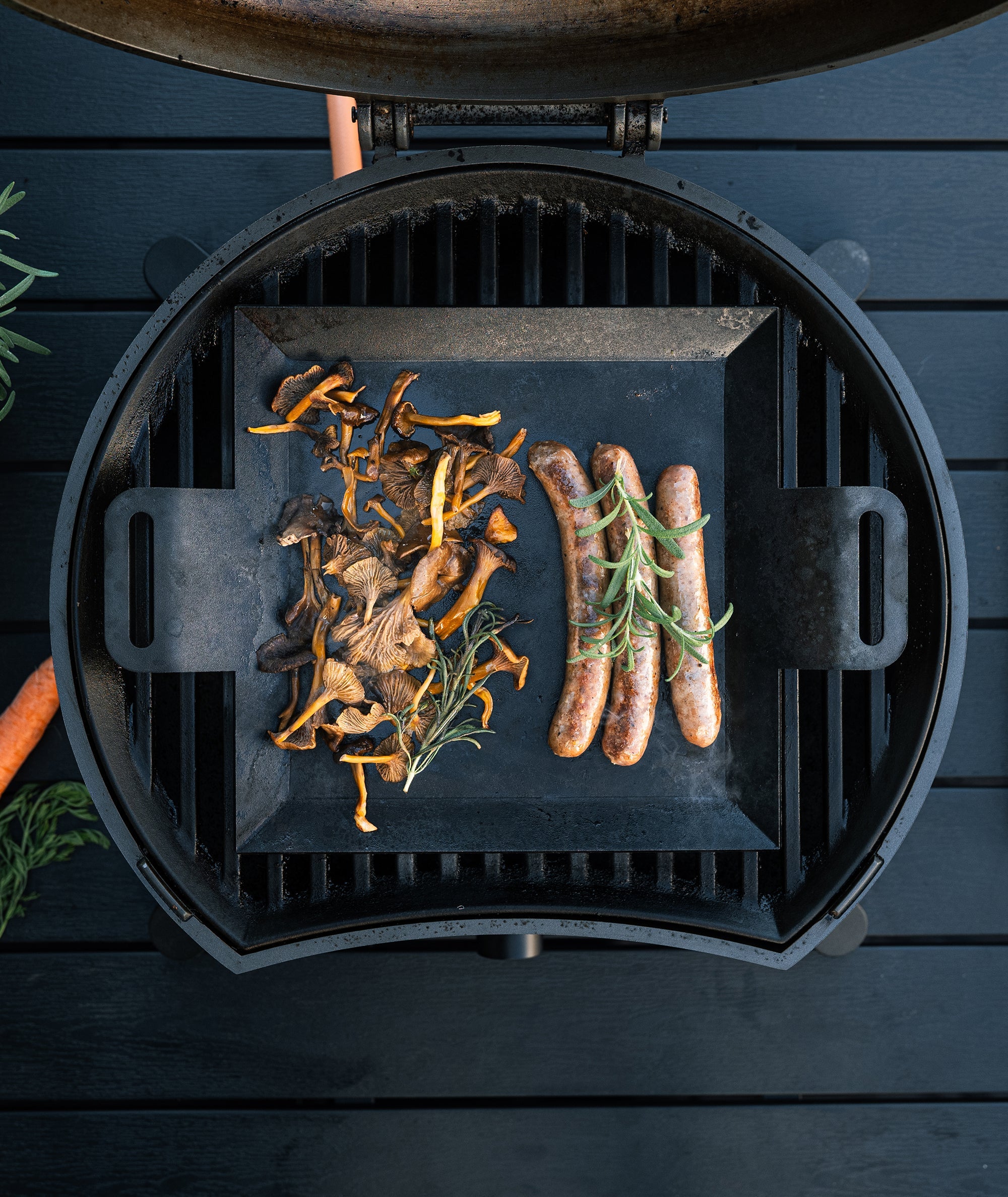 Due to its square shape, you get 21% more cooking space compared to a round griddle of the same width. So you have room for everything from burgers and steaks to small pancakes - or maybe a row of grilled lobster tails?