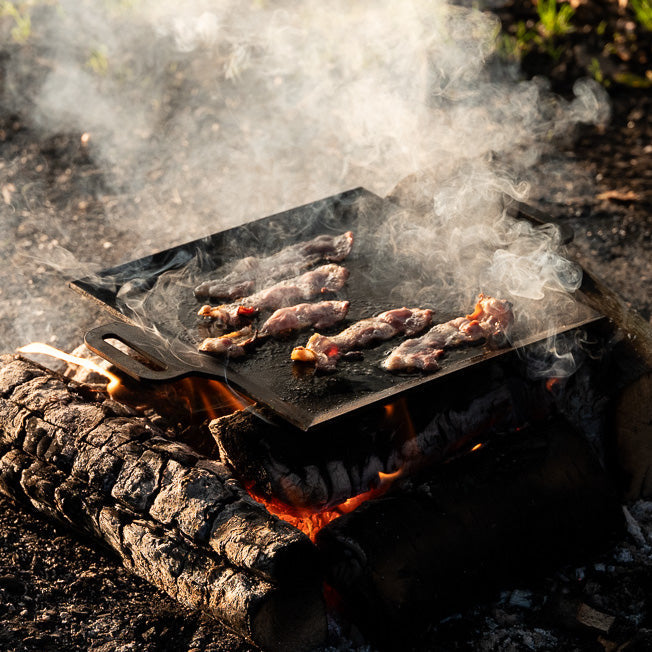 The griddle is inspired by professional kitchens and built for a lifetime of culinary adventures both indoors and outdoors. Carbon steel is just as durable as cast iron, but weighs only half as much, giving the griddle incredible heat control and fantastic natural non-stick properties that only improve with time.