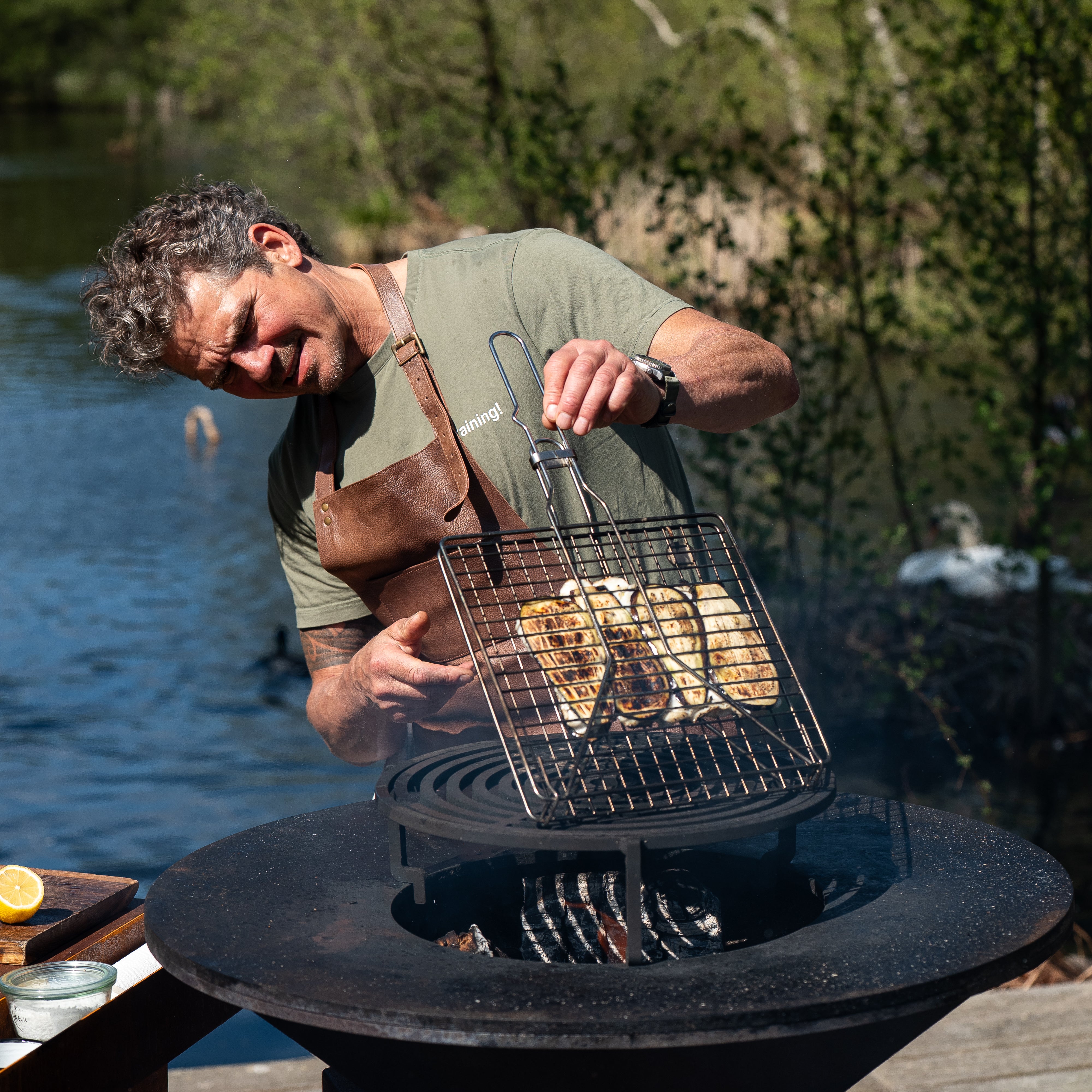 .The grill basket is easy to use, easy to pack and hard to do without if you love cooking outdoors. Imagine you've just landed a fish and you're cleaning it in the cold water on the shore. You find some firewood nearby, light a fire and cook the fish right away: Place the fish in the basket and place it directly over the flames for a crispy skin and juicy interior. It doesn't get any fresher than that.