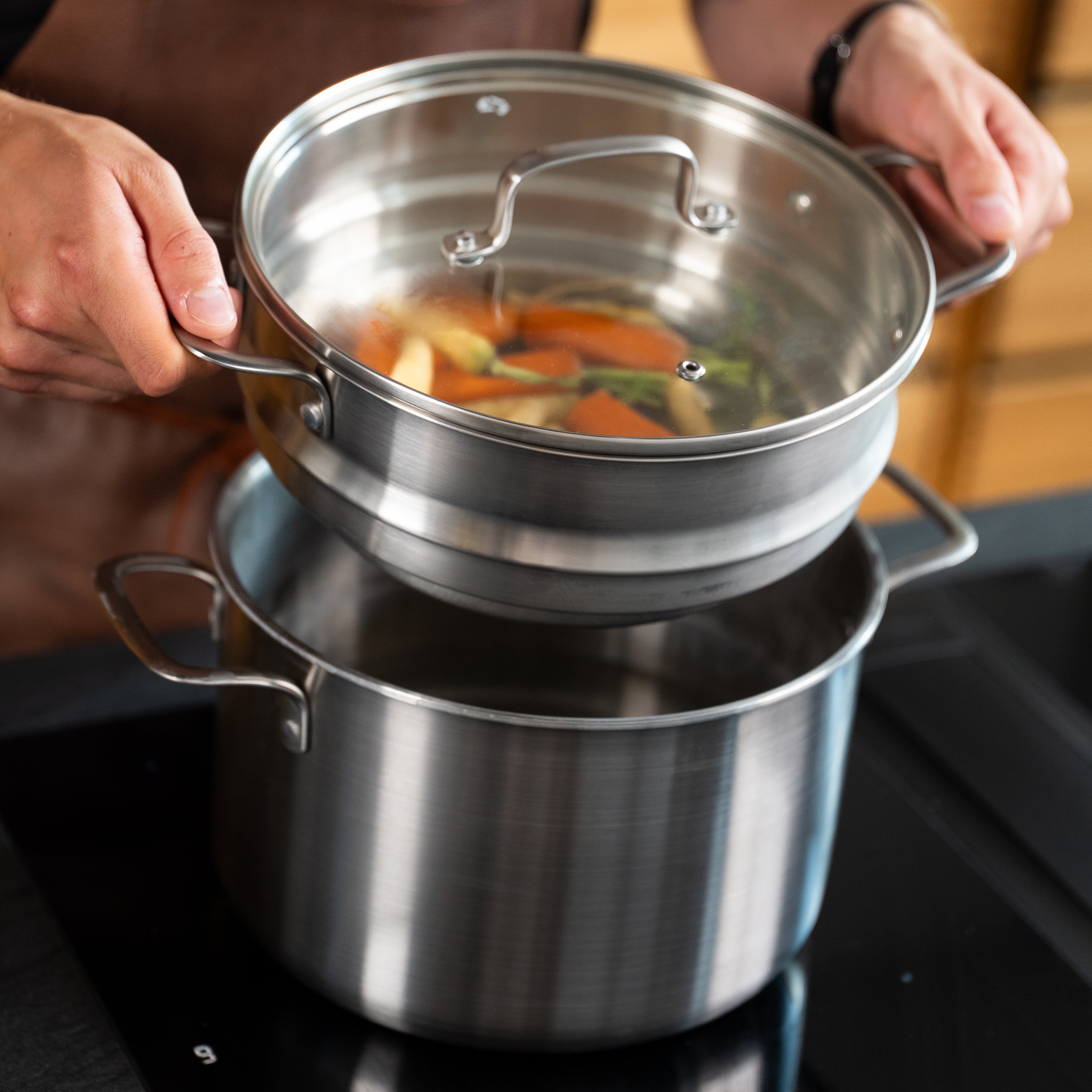 A steam insert is the ideal upgrade for your 5-ply pots. If you have tried steaming in your pot without a steam insert, you know that it is not an easy task. With a steamer insert, you get a tool that is designed to make it as easy as possible: boil water in the bottom of the pot and place the insert inside – without burning your fingers.